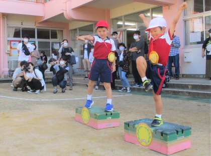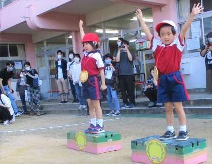 運動会 3 公開日 2021/09/25 更新日 2021/09/25 楽しい月岡幼稚園ニュース 加技走では「月岡オリンピック」が開催されました。聖火を運ぶ姿は、かっこよかったですね。みんな火を落とさないように、上手に運ぶことができました。最後は金メダルをゲットして「はい、ポーズ!」それぞれが違うポーズをしており、とても可愛らしかったです。大きな金メダル、お家の人にたくさん見せてね。
