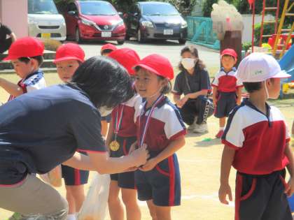 閉会式では、育友会会長から「よく頑張りましたね」と声をかけてもらって嬉しそうでした。金メダルをもらったときは照れくさそうにしたり 喜びから何度も眺めたりしていたそれぞれの子供たちの表情がとても可愛かったです。