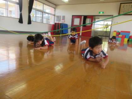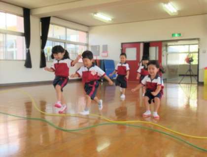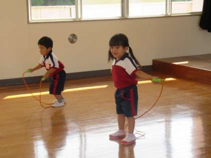 今日の体操教室は縄跳びでした。初めてする縄跳びにちょっぴりドキドキする子供たちでしたが、とっても楽しく教えてもらいました。初めはヘビや波に見立てた長縄跳びをジャンプしたり、くぐったり、走ったりして遊びました。たくさん長縄跳びで遊んだ後は、いよいよ自分の縄跳びをもって跳んだり回したりしてみました!最後まで楽しく教えていただいたので、終わった後は「もう1回縄跳びしたい!」「今日家に持って帰ろうかな」と嬉しい声がたくさん聞かれましたよ♪
