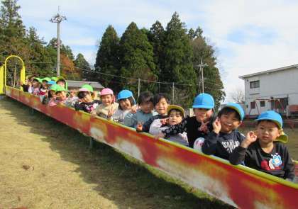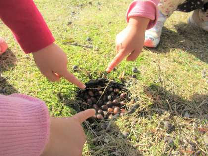 今日は全クラスでお散歩に出かけました♪ 空気の澄んだとても気持ちのよい天気だったので、散歩途中に立山がきれいに見えましたよ。山の頂上が白くなっており「もうすぐ雪降るのかな〜」「早く雪降ってほしいね」と雪が待ち遠しい子供たちです。壇の山公園に着くと、穴の中にどんぐりがたくさんあり「りすさんが集めたのかな」と可愛い想像をしていましたよ。クラスの輪を超えて、みんなで滑り台をたくさん滑ったり、走ったりして思いっきり遊びました。たのしかったね!