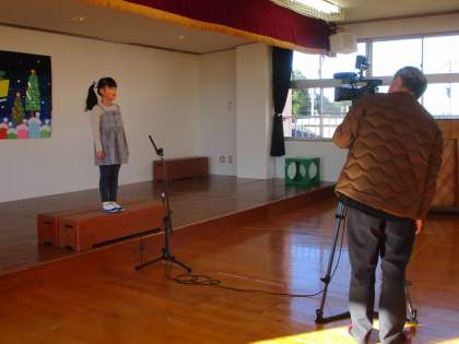 今日はハローキッズの撮影がありました。インタビューを受ける言葉の練習をし、楽しみにしていました。カメラマンさんを前にして、緊張が見られましたが言い終えると安堵の表情でした。放送日まで楽しみにしていてくださいね!