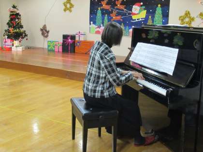 次のお楽しみは、ピアノの演奏です。「残酷な天使のテーゼ」や「パプリカ」「紅蓮華」を演奏していただき、子供たちは知っているフレーズがあると自然と口ずさんでいました。子供たちにとって、素敵なプレゼントになりました。