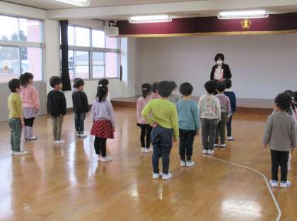 始業式では、学年のまとめとして友達と一緒に楽しんでほしいこと、頑張ってほしいことを園長先生から話されると元気に返事をしていました。3学期は短い期間ですが、友達同士の絆を深め、この時期にしかできない活動を大切にして、保育していきたいと思います。