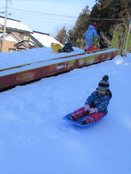 雪の壇の山公園へ!パート2(ばら組) 公開日 2022/01/25 更新日 2022/01/25 楽しい月岡幼稚園ニュース 壇の山公園では、雪山からそのままお尻で何度も滑りました。雪山のどこが滑りやすいかいろいろな場所から滑りました。何度も滑ってあるところはスピードが出て子供たちも大喜び!ソリではバランスをとりながら長い距離を滑り、途中ジャンプ台のようなへこみもあり、より面白さを感じていました!
