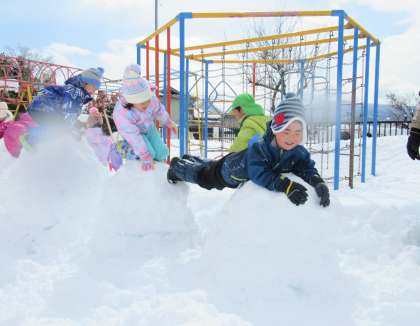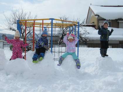 雪の玉コロコロゴロン!(うさぎ組) 公開日 2022/02/18 更新日 2022/02/18 楽しい月岡幼稚園ニュース 2月18日(金) 今年の冬もたくさん雪遊びをすることができました。今日は、雪玉を転がし始めるとみるみる大きくなって一人一人の大きな雪の玉が完成!最初はコロコロしていたのが、ゴロンゴロンとなり、最終的には「よいしょ!」と教師と力を合わせないと動かなくなり、汗が噴き出るほど必死でした。みんなの玉を並べて渡ったりジャンプしたり楽しく遊ぶことができました。