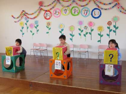 ゲームでは『箱の中身はな〜んだ?』に参加しました。「何が入ってるんだ?」と眉をひそめながらも、正解できた子が多く驚きました。「またやりたい!」とすごく楽しかったようです。