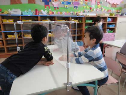 グループの名前とクラス目標を決めました。始業式から話し合っていたこともあって、考えてきた友達もいました。それぞれのグループで自分が考えてきたことを伝え、違う意見が出た時にはどうやって決めたらいいのかもみんなで話し合って決めていました。クラス目標を決めた時には、それぞれが「縄跳びを頑張りたい」「フラフープができるようになりたい」「折り紙も上手に折れるようになりたい」という意見が出ました。「たくさん出たから『いろいろ』って付けたらどうかな」という意見が出て、みんなが賛成。今年度のクラス目標は「みんなでいろいろ力を合わせて頑張ろう!」になりました。一年間、年長組として思う存分力を発揮しながら、みんなで団結して頑張っていこうと思います。