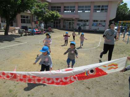 こどもの日の集い〜その1〜 公開日 2022/05/02 更新日 2022/05/02 楽しい月岡幼稚園ニュース 5月2日(月) 今日は青空の元、園庭でこどもの日の集いがありました。園庭での集いを楽しみにしていた子供たちの、元気な歌声が青空に響いていました。みんなで体操や、こいのぼりに向かって、さわやかな風を受けながら、元気いっぱいにかけっこやリレーを楽しみました。