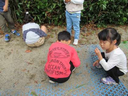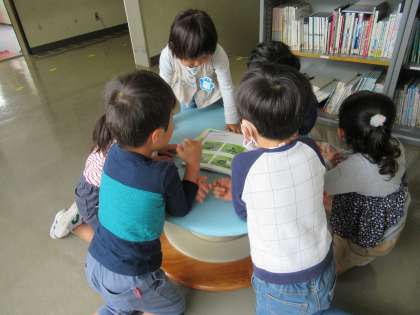 園庭でダンゴムシを捕まえて観察ケースに入れた途端、赤ちゃんが生まれました。「これは大変!」「初めて見た」と様子を見ていた子供たち。「赤ちゃんって、何を食べるの」「どうやって大きくなるのかな」と疑問がいっぱい。早速、図鑑で調べることにしました。絵本のコーナーでダンゴムシの図鑑を見つけると「大人と同じものを食べるって書いてあるよ」「脱皮して大きくなるんだって」「脱皮した皮は食べるらしい」ということを知りました。園庭に出て、ダンゴムシのために落ち葉集め。硬い葉っぱなのか柔らかい葉っぱなのか、乾燥している葉っぱなのかと迷いながら集めていました。生き物を育てるには何が必要か、どうすればいいのかと考える過程が大切だと思います。今後も子供たちと一緒に学び、発見していきたいです。