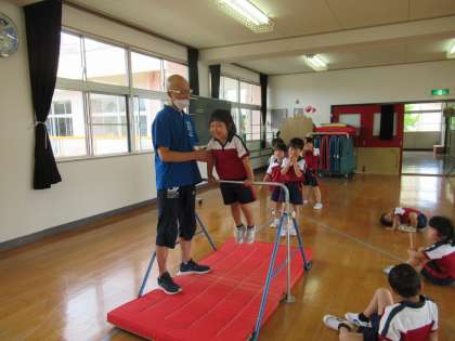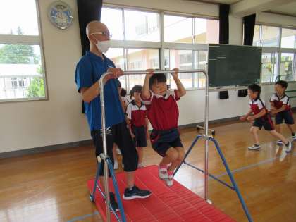 今月の体操教室は鉄棒。足抜き回り腰抜き回り、ツバメからの前回り、力持ち(腕を曲げてのぶら下がり)、逆上がりと、いろいろなやり方に挑戦しました。講師の先生が傍で励ましたり、体を支えたりしてくださることで安心して取り組めました。幼稚園でも子供たちと一緒に取り組んでいきたいと思います。