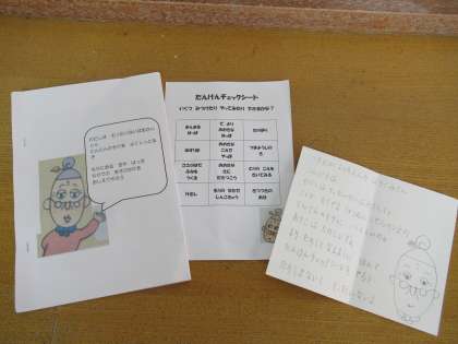 七夕の集いが終わって、ばら組の部屋に戻ってきた子供たち。机の上に行くときにはなかった風呂敷包みを発見!「これ、何かな」「こんなのなかったよ」と大騒ぎする中、中身を見てみると、もったいないばあさんからの手紙が届いていました。手紙には「今度、立山青少年の自然の家に行くらしいのぉ。あそこは楽しいぞぉ。楽しまないともったいないよ」と書かれていて、探検チェックシートやしおりをもらいました。10日(日)の年長児活動がさらに楽しみになりました。