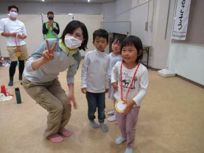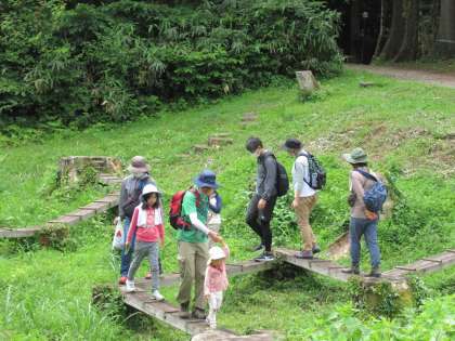 年長児活動(親子活動)3 ばら組 公開日 2022/07/19 更新日 2022/07/19 楽しい月岡幼稚園ニュース アスレチックで遊んだ後は、リスの散歩道へ。細い道から落ちないようにバランスよく歩きました。笹でつくった船を水辺で流し、オタマジャクシも見付けました。 退所式では、お家の方からお手製の金メダルをもらって大喜びの子供たちでした。