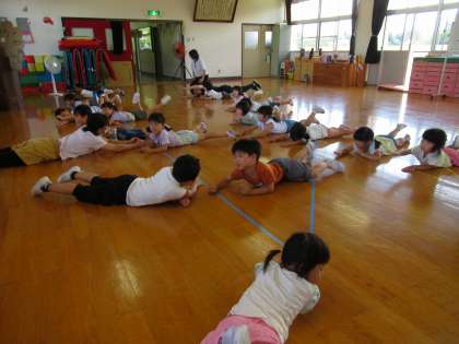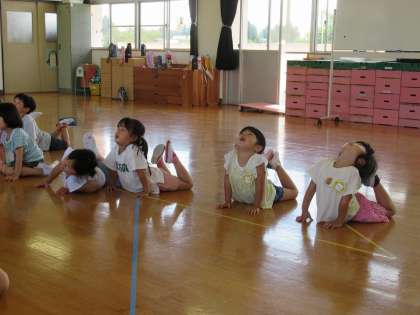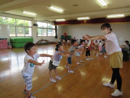 楽しいチアダンス(全園児) 公開日 2022/07/19 更新日 2022/07/19 楽しい月岡幼稚園ニュース 7月13日(水) パピーズの水口先生に楽しいチアダンスを教えていただきました。最初はストレッチ。体を十分にほぐしてからチアダンスを始めました。音楽に合わせて、リズムよく手を振り、ジャンプし、掛け声をかけ、元気に踊りました。一生懸命に踊る姿をお家の方にも見ていただく機会があればと思っています。