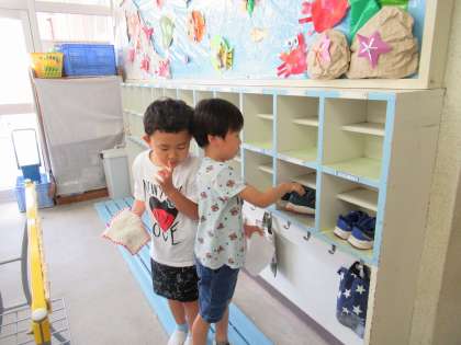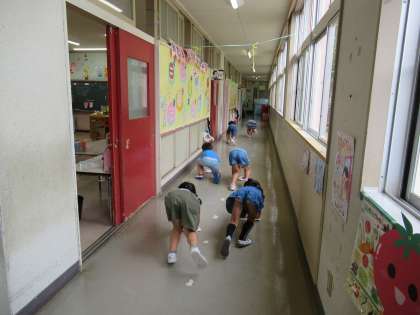 みんなで大掃除(ばら組) 公開日 2022/07/20 更新日 2022/07/20 楽しい月岡幼稚園ニュース 7月20日(水) 1学期最後の日。終業式を終えて、部屋に戻った子供たちは雑巾を持って掃除を始めました。棚の中、床、廊下、玄関…自分たちの使った場所を順番にきれいにしていきました。幼稚園がピカピカになりました。また、2学期もたくさん遊びましょうね!