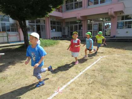 登園日2日目。「おはようございます」と元気に挨拶をして、部屋に入ってきました。登園した子から友達と協力して、競技に使う小道具づくりをしました。星を台紙に貼りながら「こっちにも貼ろう」「小さい星と大きい星を並べて貼ったらかわいいね」と話をしながらしていました。その後は園庭でリレー。久しぶりに走ったからかうまくバトンが渡せず、悪戦苦闘。トラックの周りを1周してから、改めてバトン渡しの練習をして2回目。良い勝負となり、園長先生からも「みんなで力を合わせると強くなれるよ」と教えてもらい、次への頑張りにつながりました。