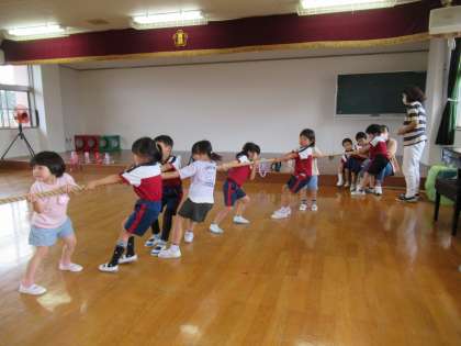 今日もみんなで玉入れや綱引きをして楽しみました。特に玉入れでは運動会当日は45個ずつと引き分けに終わり、今日こそはと気合を入れてやったのですが、な・なんと44個ずつの引き分け!「何回引き分けになるの」「今日もまただ」と言いながらも、お互いが勝ったことに嬉しそうにしていました。しばらくは運動会ごっこが続きそうです。