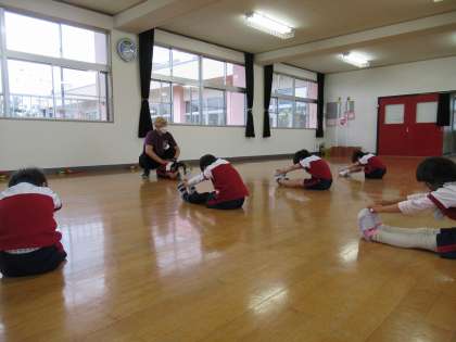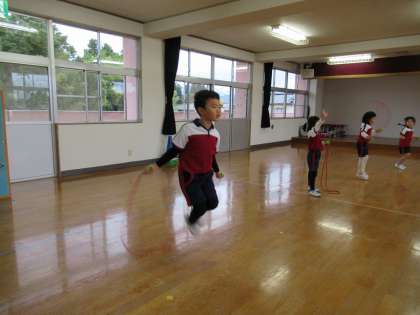 体操教室(ばら組) 公開日 2022/10/21 更新日 2022/10/21 楽しい月岡幼稚園ニュース 10月18日(火) 今回は縄跳び。準備体操やストレッチを済ませ、前跳び、後ろ跳び、駆け足跳びに挑戦しました。最後に三鍋先生から「自分の好きな跳び方を見せて」と言われ、前跳びを何回跳べるのか挑戦する子、あや跳びや二重跳びに挑戦する子とそれぞれが最後まで出された課題に取り組んでいました。三鍋先生からも「これからも縄跳びを続けてください。皆さん、上手でしたよ」と褒められて嬉しそうでした。