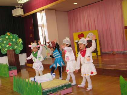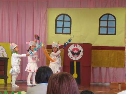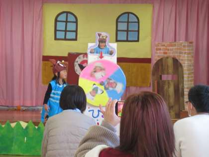 劇遊び「おおかみと3匹のこやぎ」では、自分のセリフを大きな声で言ったり、場面に応じた表情もしながら、いつも通りの上手な姿を見せてくれました。大好きな家族から、たくさんの拍手や、ときには笑い声もいただき、終わったあとは「お母さんたち笑ってたね」と嬉しそうに話しをしていました。