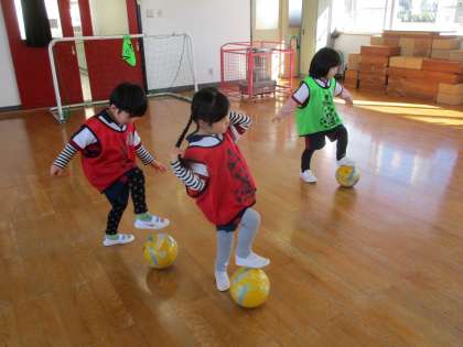 今日はサッカー教室がありました。3学期すぐのサッカー教室でしたが、子供たちはコーチの話をよく聞いて参加していました。ボサッカーボールを持って鬼ごっこや転がしドッジボールをして上手にコーチから逃げていました。
