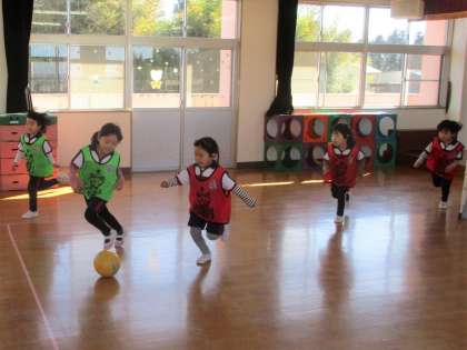 ボールを蹴りゴールにシュートしたり、2チームに分かれてゲームをしたりすることを楽しみました!次回も楽しみにしています!