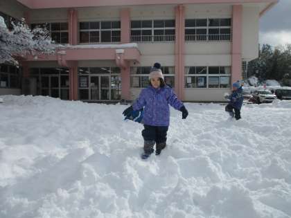 雪遊び(もも組) 公開日 2023/01/26 更新日 2023/01/26 楽しい月岡幼稚園ニュース 1月26日(木) 待ちに待った雪遊び!晴れ間に雪遊びをしました!たくさん雪が積もり、雪の中を歩くもののなかなか進まなくて一歩を踏みしめていました!雪が沈まない場所を見つけて慎重に歩く姿もありました。「今度はゆきだるまもつくりたいね!」と子供たちと話しています!