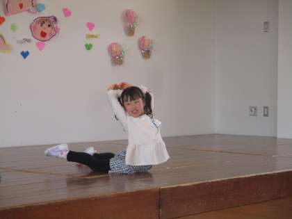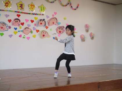 ばら組さんからも、お礼に得意なことを披露してくれました。こまや、鉄棒、フラフープ、けん玉、バレエ、空手等、それぞれに披露する姿はとても輝いて見えました。好きなことや得意なことを、これからももっと伸ばしていってほしいと思います。そして、ばら組さんからは修了記念製作として「おはよう当番お知らせボード」もプレゼントしてくれました。また、うさぎ組やもも組、先生たちにも一人一人にプレゼントを用意しており、みんなとても喜んでいましたよ。