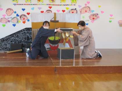 お別れ会 5 公開日 2023/03/10 更新日 2023/03/10 楽しい月岡幼稚園ニュース 先生たちからは、大好きな子供たちに「先生バージョンのおむすびころりん劇」を披露しました。ブラジルねずみも途中から登場し、ブラジルの踊りも披露しました。「先生たちがおむすびころりんするの!?」と驚く子供たちでした。 午前の部はここで終わりになり、みんなでばら組さんをお見送りしました。