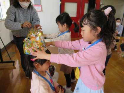 3月生まれの誕生会(全園児) 公開日 2023/03/13 更新日 2023/03/13 楽しい月岡幼稚園ニュース 3月10日(金) 3月生まれさん、お待たせしました!やっとお祝いの日が来たと喜んでいました。みんなで拍手で迎え、盛大にお祝いしました。お楽しみ会では、誕生月の友達の曲に合わせて踊ったり、椅子取りゲームをしたりして楽しみました。