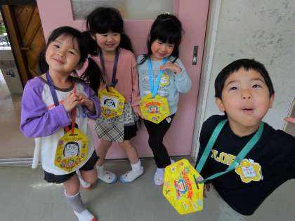 また、月刊誌の付録に付いていた「1年間がんばったことカード」をみんなで完成させました。「私こんなにできるようになったことあるんだ!」「みんなに教えてこよう!」と大きくなったことが嬉しくて、もも組さんや先生方に見せに行っていましたよ。次はいよいよばら組さん!楽しみですね。うさぎ組さんと過ごす1年間は本当に楽しい日々でした。ありがとうございました。