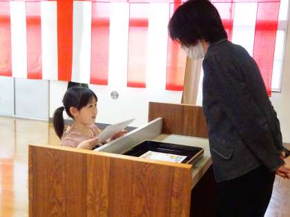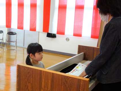 もも組・うさぎ組の修了式がありました。名前を呼ばれると元気な声で返事をし、園長先生から修了証書をもらいました。年長児のように修了証書をもらい「ありがとうございます」と言葉を返す姿に成長を感じました。