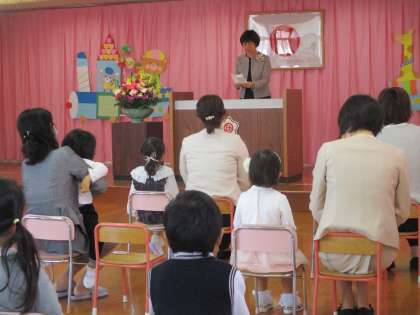 入園式では、新入園の友達の名前を呼ぶと、元気よく「ハイ」と返事をしたり恥ずかしそうにしながらも笑顔を見せたりしていましたよ。
