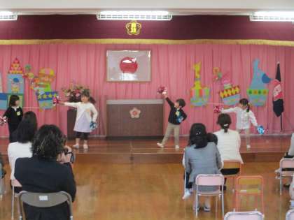 入園式後には、ばら組・うさぎ組による歓迎会がありました。