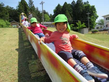 少し風は吹いていましたが天気も良かったので、みんなで壇の山公園まで遊びに行きました。公園に向かう途中で、今度月岡地域で行われる「えだまめの種まき」の畑にも寄りました。何人かは家族で参加するようです。