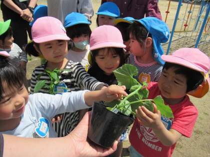 野菜の苗を植えました(ばら組)