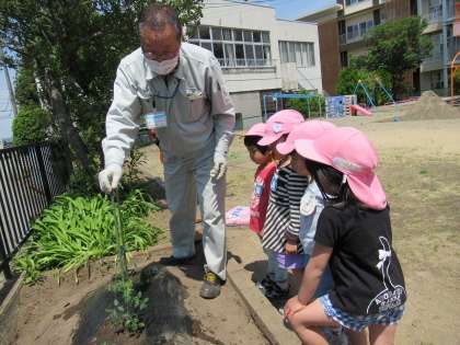昨年の年長組が野菜を育てていたことを覚えていて「私たちも野菜を育てたい」という話になり、先日からどのような野菜を植えるか、どの野菜をどの時期に植えるのかなど、図鑑や絵本を見て調べていました。