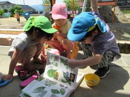 この虫って何かな(ばら・うさぎ組) 公開日 2023/05/17 更新日 2023/05/17 楽しい月岡幼稚園ニュース 5月16日(火) 砂場のところで青虫を見付けた子供たち。「これって、どんな虫になるのかな」と不思議そうに眺めていました。 図鑑を用意し、みんなで調べますが分かりません。でも、育ててみようという話にはならず「育ててみたら分かるんじゃない」と提案し、ようやくみんなで育てることになりました。成長したら、どうなるのかが今から楽しみです。