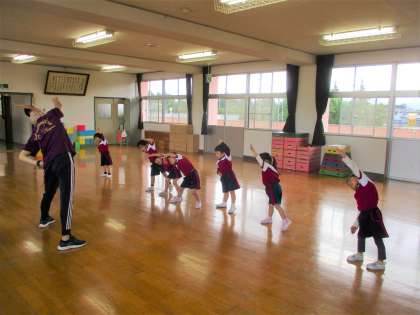 講師の先生の動きを一生懸命まねっこする様子がかわいらしかったです。