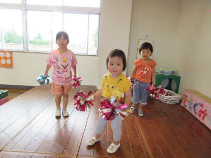 親子サークルの友達も遊びに来て、もも組さんの真似をしながら踊りを楽しんでいました。