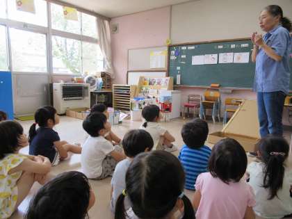 園長先生からも「みんなが怪我なく安全に遊べますように」とお祓いしてもらい、プールでの約束事を学びました。