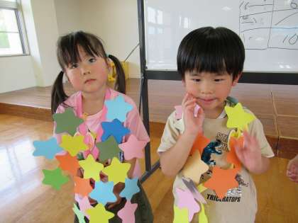 集めた星は、一人ずつ首飾りにしてもらい、ますます笑顔いっぱいでした。