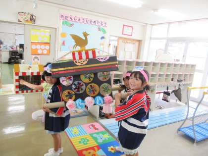 はっぴを着ておみこしワッショイ、ワッショイ!!