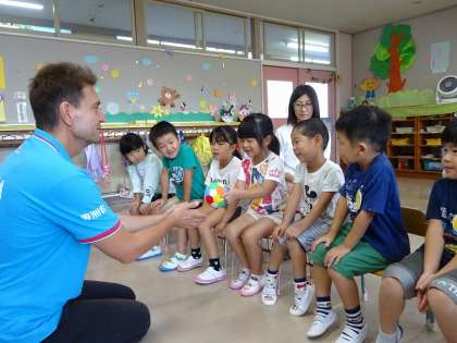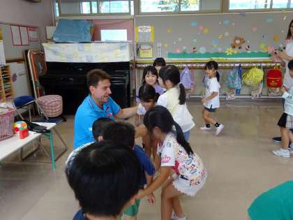 今日は、ダン先生から英語で天気を教えてもらい「It's sunny」の元気な声が響きました。