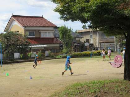 秋晴れの中、うさぎ組だけでタッチリレーをしました。