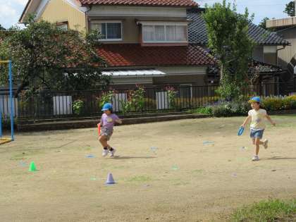 秋晴れの中、うさぎ組だけでタッチリレーをしました。