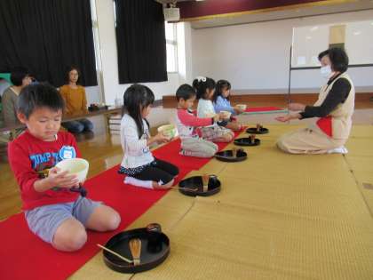 うさぎ組は今日からお茶教室が始まりました。少し緊張した表情ではありましたが、抹茶の感想を聞くと「甘かった」「美味しかったよ」と教えてくれました。毎月が楽しみですね。