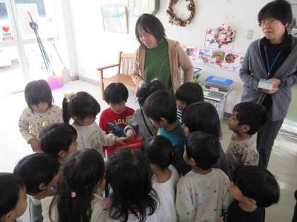 手紙は、英語??で書いてあり、先生が読んでくれたところ・・・「20日にある冬のこども会に来ます」とサンタさん!!