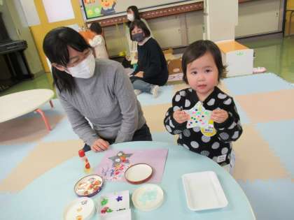 次回の親子サークルは、12月20日(水)です。冬の子ども会(クリスマス会)をするので、9時30分から9時40分までに来てくださいね。楽しいパネルシアターやサンタさんにも会えるかもしれませんよ。お待ちしています。