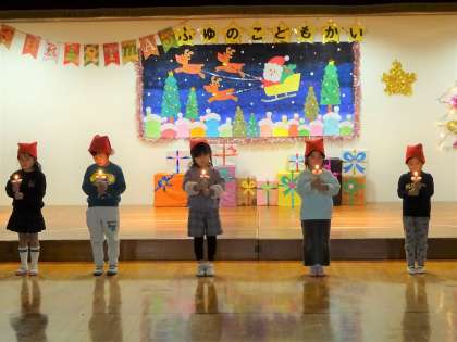 サンタさんがいつ来るのだろうとワクワクしながら待ち、いよいよリンリンリン・・・鈴の音が聞こえてくると嬉しい表情を見せていた子供たちでした。