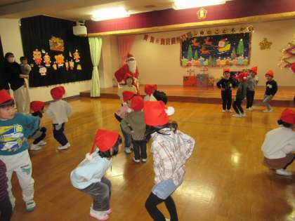 また、プレゼントのお礼にサンタさんへ♪ジングルベルロック♪の踊りを披露したり、一緒にフォークダンスを踊ったりして楽しい時間を過ごしました。