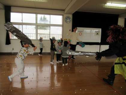 クイズの後は・・・子供たちの心の中から出てきた「鬼」がついに遊戯室にやってきました。